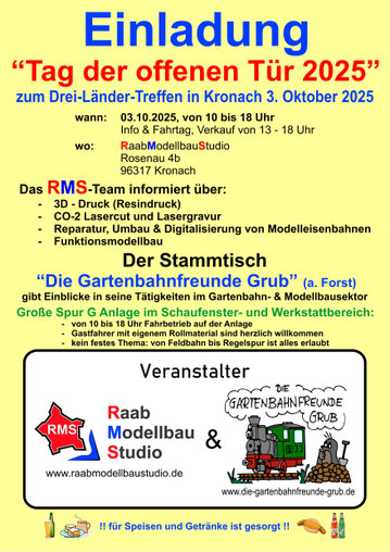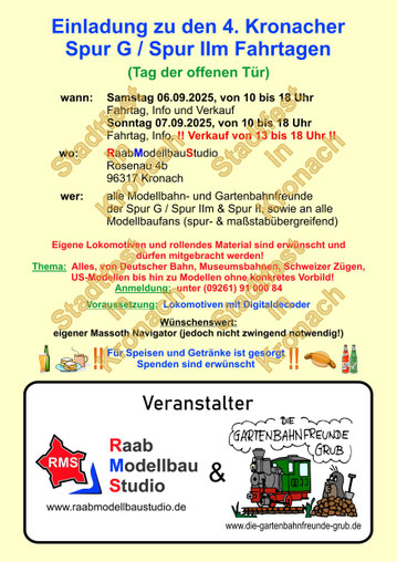 RaabModellbauStudio und "Die Gartenbahnfreunde Grub" laden zum "Kronacher Spur G Andampfen 2025" ein: